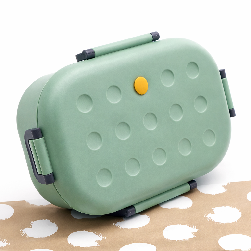 Ланч бокс “Dots” – небольшой одноуровневый ланчбокс, имеющий стильный и современный дизайн. В данной модели один полноценный ярус, в котором есть разделитель. В крышку встроен резиновый уплотнитель, обеспечивающий герметичность ланчбокса. Этот контейнер изготовлен из очень крепкого пластика и имеет надёжные защёлки.