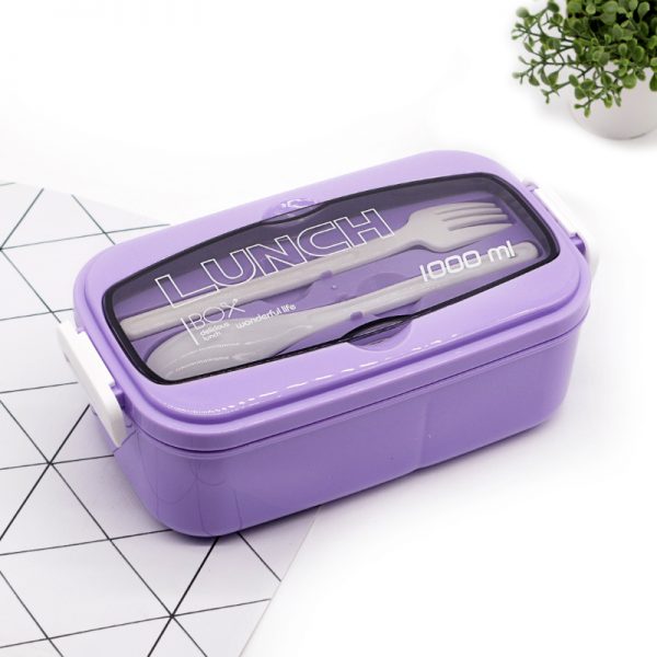 Ланч бокс на 2 отделения с приборами LUNCH 1000 мл – фиолетовый