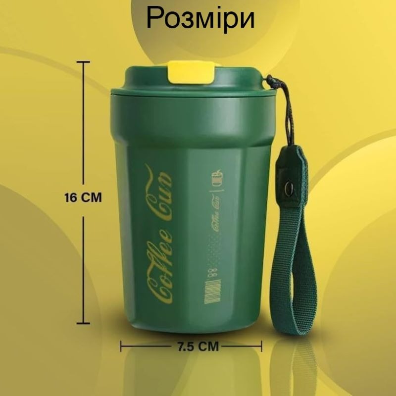 Термокружка для напитков кофе чай с датчиком температуры Coffee Cup 390 мл – зеленая