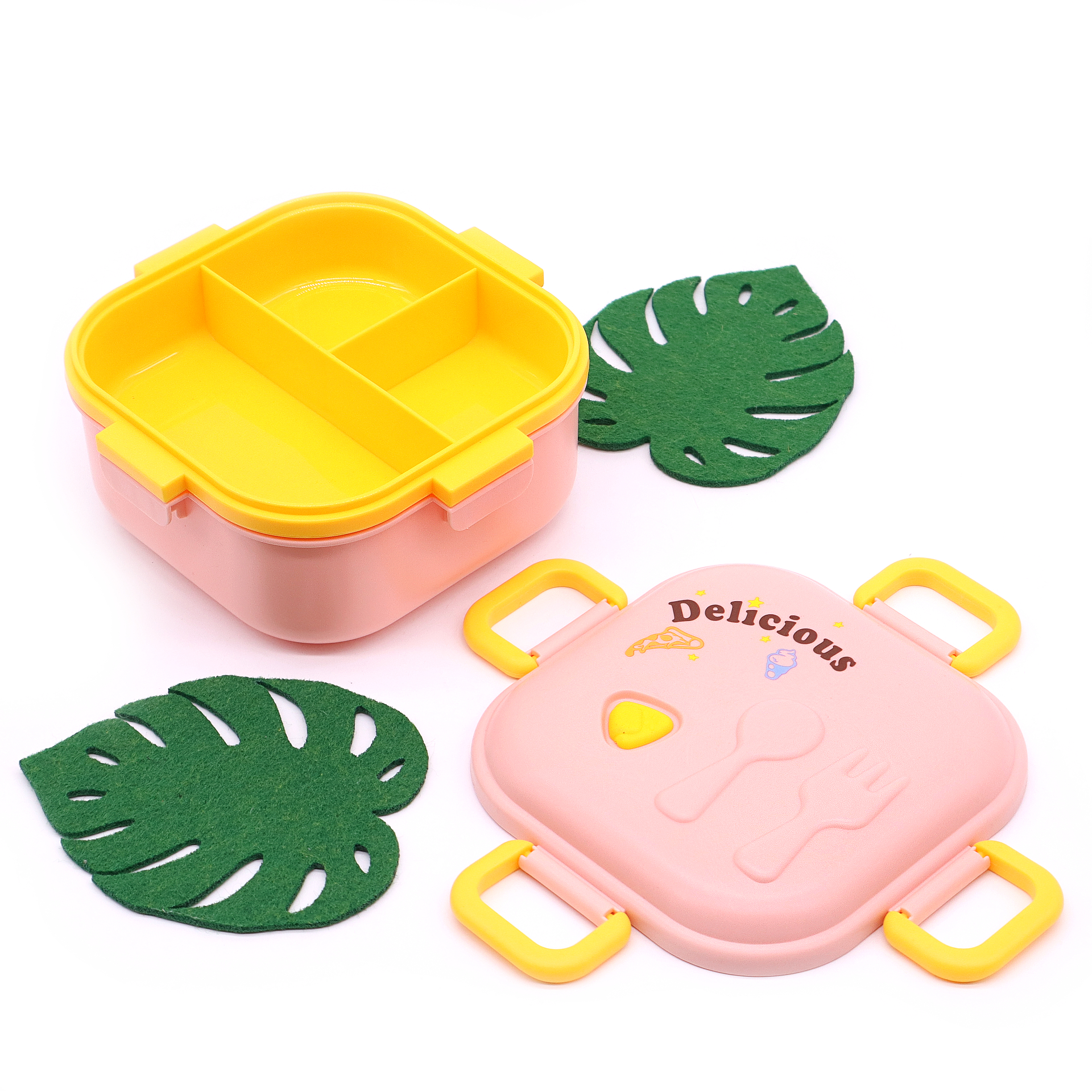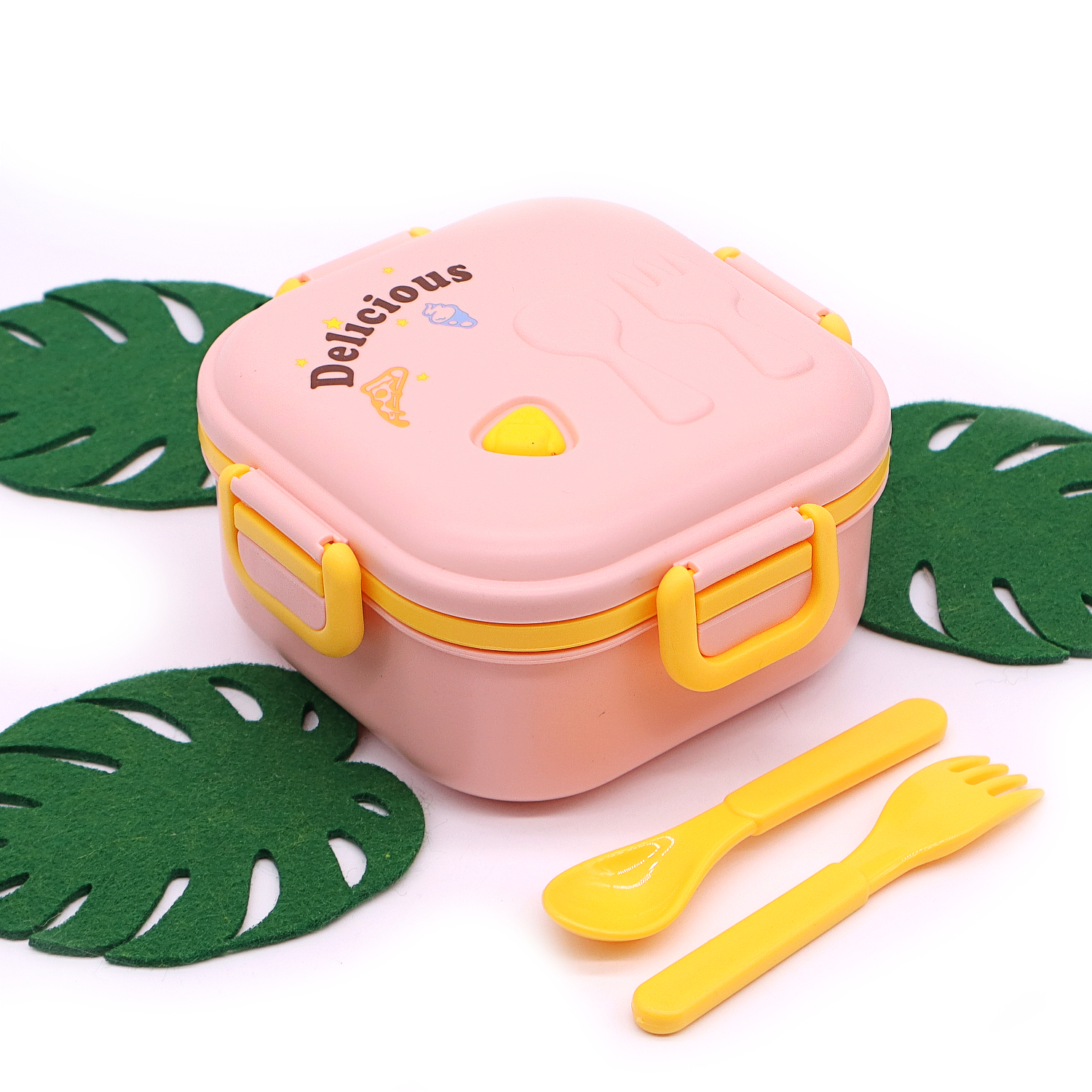 - Ланч бокс детский на один уровень 850 мл со столовыми приборами Delicious розовый