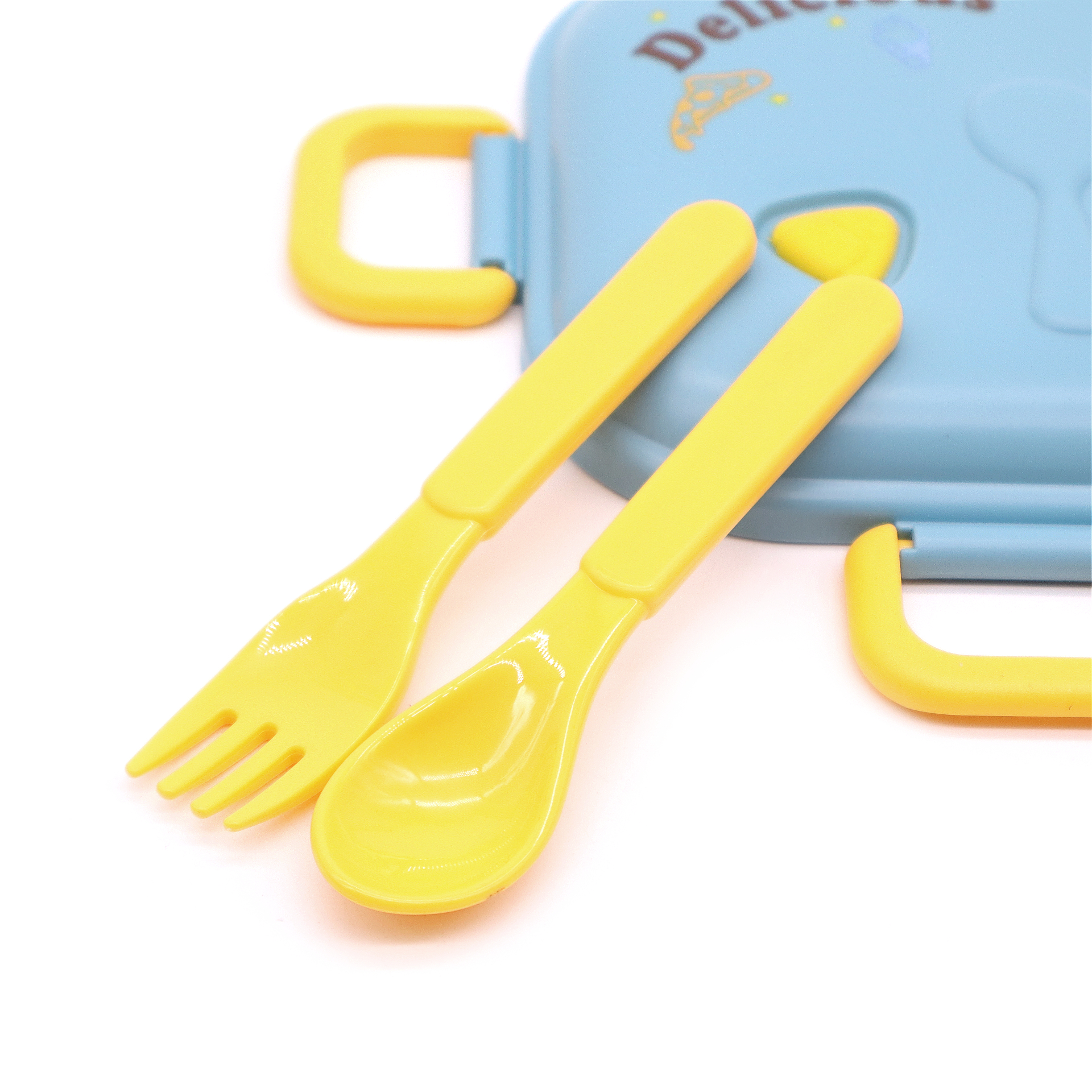 - Ланч бокс детский на один уровень 850 мл со столовыми приборами Delicious синий