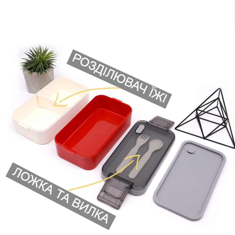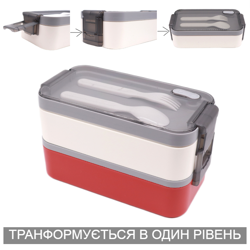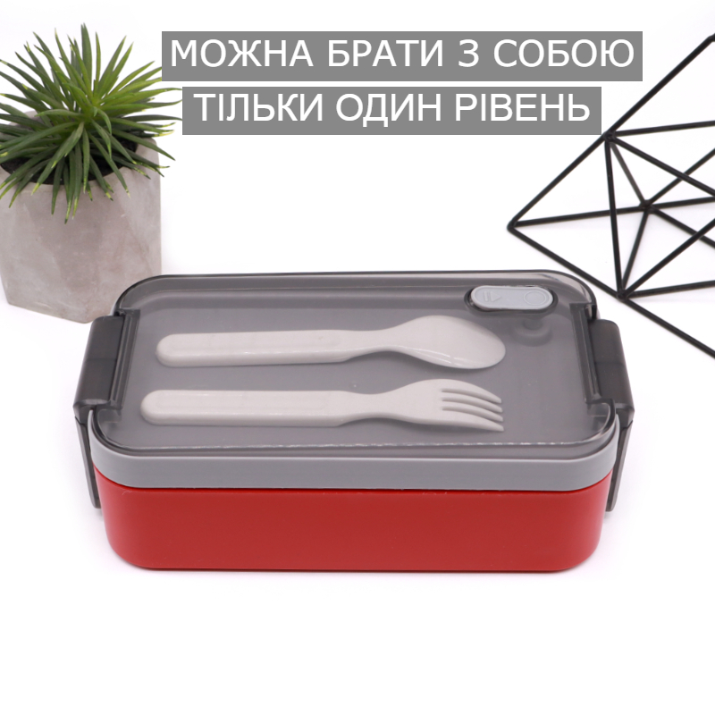 Ланч бокс трансформер на 2 или 1 уровень с столовыми приборами Line 1200 мл – красный