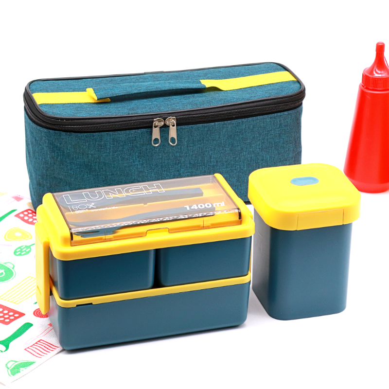 - Набор Bento Set 3 в 1 ланч бокс /супница/ланч бэг/ c столовыми приборами - синий