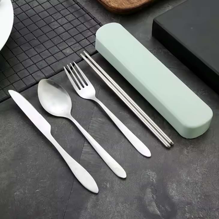 В комплекте: Футляр, ложка, вилка, нож, палочки