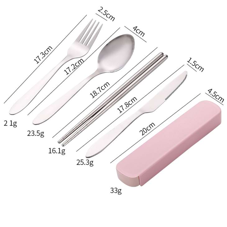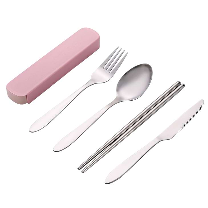 Столовые приборы ложка/ вилка/ нож/ палочки в пластиковом чехле Case – розовые