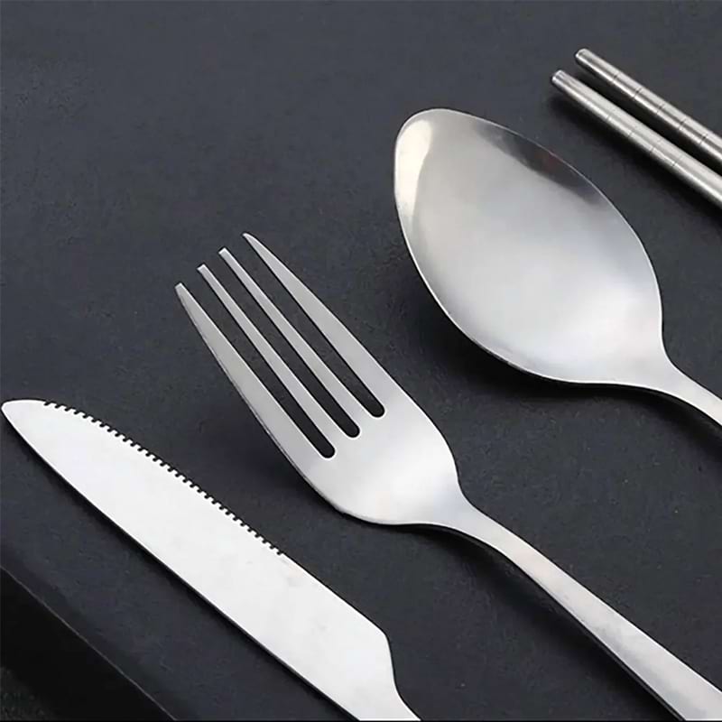 В комплекте: Футляр, ложка, вилка, нож, палочки