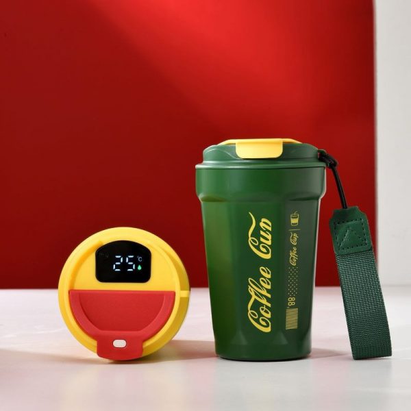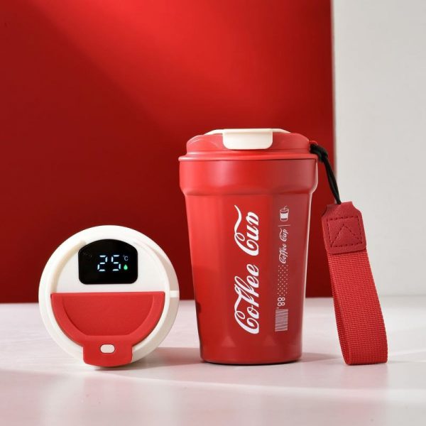 - Термокружка чашка для кофе/чая с индикатором температуры стальная Coffee Сola 420 мл розовая