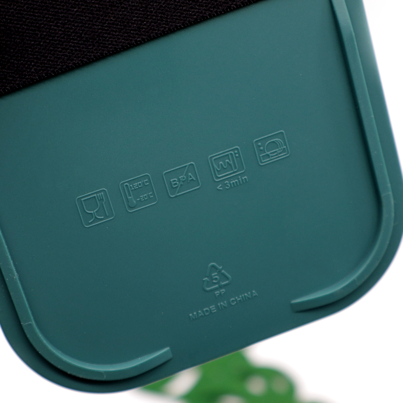 Цей ланчбокс може бути використаний в морозильній камері, посудомийній машині та мікрохвильовій печі, але розігрівати їжу в ньому слід не більше 3 хвилин без кришок.