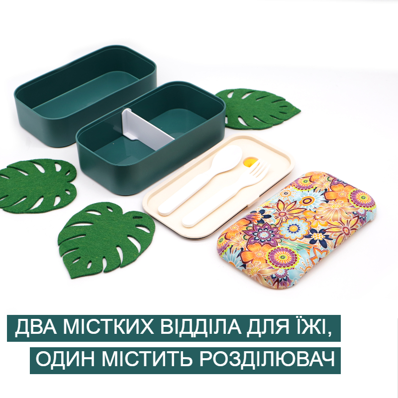 Цей ланчбокс виготовлений із харчового поліпропілену, який не містить бісфенолу А, і, отже, є безпечним для здоров'я та не є токсичним. Він ідеально підходить для зберігання сухої їжі та страв з соусами (не підходить для супів!), і включає дві окремі ємності об'ємом по 600 мл кожна. Кожна з цих ємностей обладнана кришкою із силіконовим ущільнювачем, забезпечуючи герметичність.