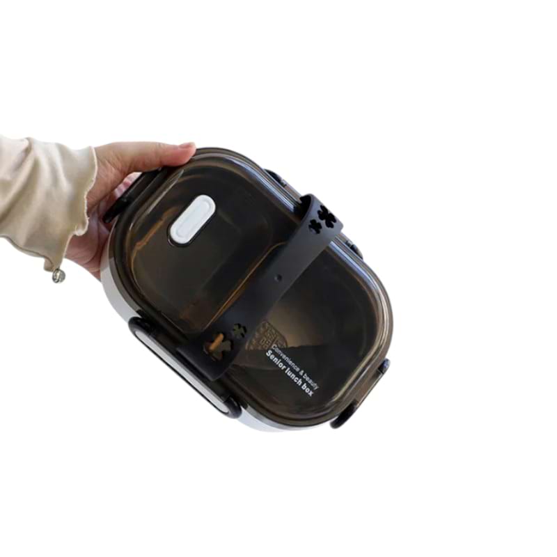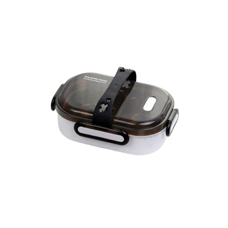 - Ланч бокс зі сталевою ємністю та знімною силіконовою ручкою Senior 800 мл чорно-білий