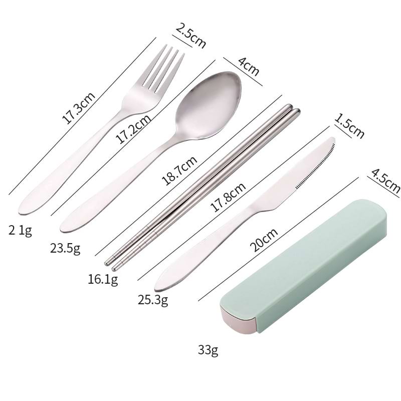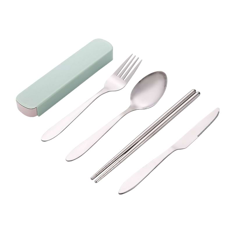 В наборе столовых приборов «Case» есть всё необходимое: палочки, ложка, вилка и нож. Столовые приборы хранятся в футляре из прочного пластика. Очень удобно брать такой набор с собой в школу, на учёбу, работу, в поездку, командировку. Все приборы сделаны из нержавеющей стали.