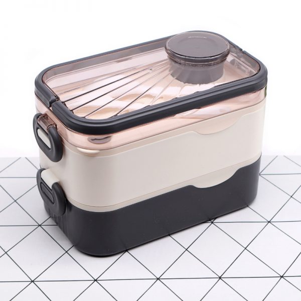 Ланч бокс на два герметичні рівні з соусницею 1600 мл Double A64 чорний бежевий