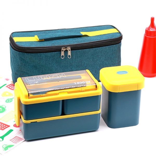 Ланч набір 2в1 з ланч боксом/ланч бегом/столовими приладами Bento Set синьо-жовтий (73118)